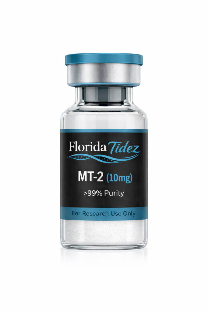MT-2 (Melanotan II) is a synthetic melanocortin analog commonly studied for its interaction with melanocortin receptors, particularly MC1R and MC4R. In laboratory research settings, MT-2 is used to investigate the biological pathways associated with melanocortin signaling and pigment-related processes. Researchers have explored its receptor-binding properties to better understand melanocortin activity within various biological systems. This compound is supplied for laboratory research purposes only and is intended exclusively for qualified scientific professionals conducting controlled in-vitro studies.